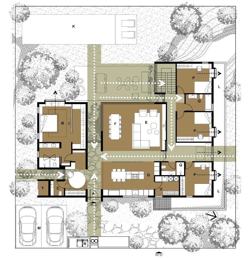 Paths of Light is a house for a family of 5. The ground floor is the main part of the house, in which all bedrooms and living spaces are placed. The basement is planned with a family room, a study, a guest suite, and an exercising space. Channels of daylight and views of the garden connect and disconnect the internal spaces from within and inside with the outside. Planning with daylight is, when worked with carefully, a design instrument. With daylight, manipulated gently, the experience of space and the sense of place change entirely throughout the day and in the different seasons. The centre of the house is the living room, kitchen and dining area. The master bedroom is placed on one side of the central space and the children’s bedrooms on the other side.